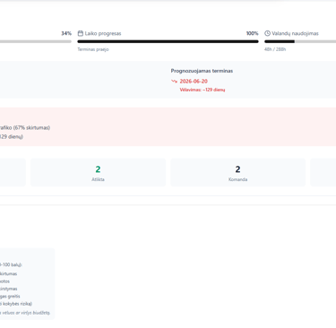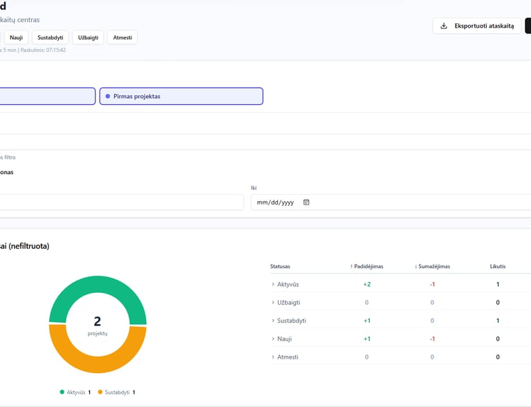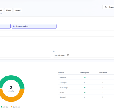 Naudodami sistemą galėsite lengviau valdyti visus projektus, greitai generuoti ataskaitas apie jų eigą ir aiškiai matyti bendrą situaciją. Sistema padės identifikuoti problemines vietas, įvertinti, ką reikėtų tobulinti, ir priimti sprendimus siekiant geriausių rezultatų.