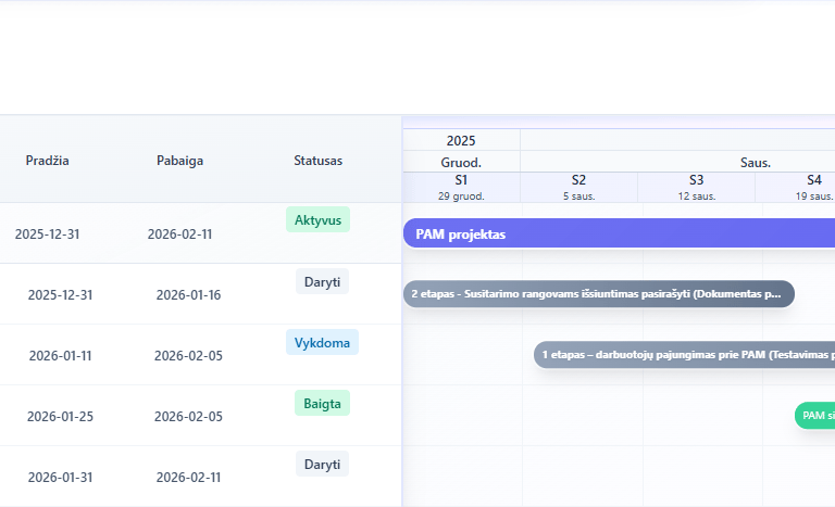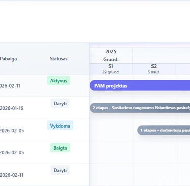 Tai sistema projektų valdymui ir kontrolės užtikrinimui.